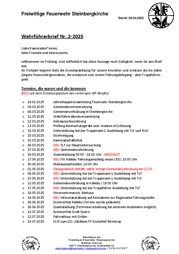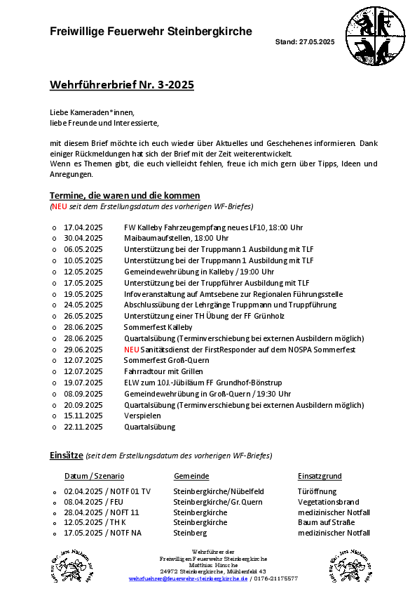 Sehr geehrte Anwohnerinnen und Anwohner der Gemeinde Steinbergkirche,