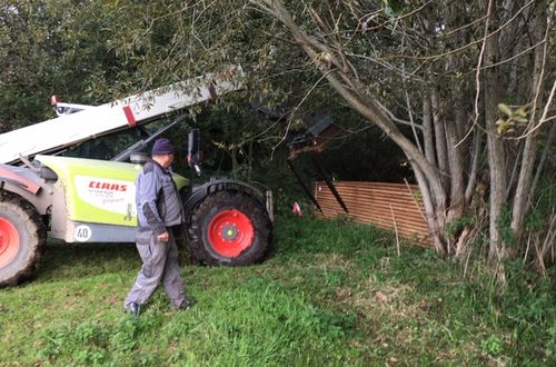 Mitglieder des Gemeinderates bringen die Bohlen zum Wanderweg
