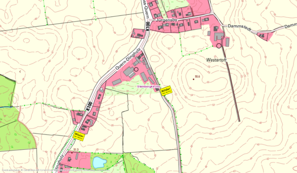 Das südliche Ortsschild von Gross-Quern ist versetzt worden. Es befindet sich jetzt vor der Haus Nr. 5 in Quern-Dingholz, damit darf in diesem Bereich nur noch 50 km/h gefahren werden.