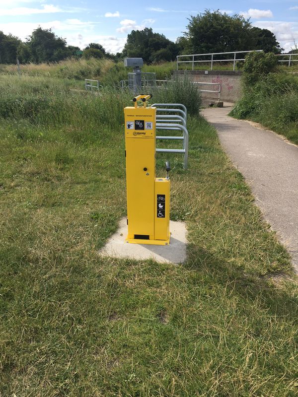 Die in der geförderten Maßnahme "Fahrrad-Infrastruktur" bestellten Fahrradbügel für die Bushaltestellen, sowie die zwei Sevice-Stationen und Fahrradboxen sind aufgestellt worden. Für die Boxen wird noch an einem Konzept für die Zugänglichkeit gebastelt, die Ständer und Servicestationen werden schon reichlich benutzt.